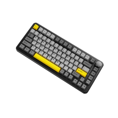 Featuring a sleek Black-Gray theme, this keyboard delivers a modern, sophisticated aesthetic perfect for any workspace or gaming setup. Its RGB backlighting with 3 customizable modes, combined with an integrated screen, enables users to personalize lighting effects, monitor key functions, and track performance metrics for enhanced productivity.
