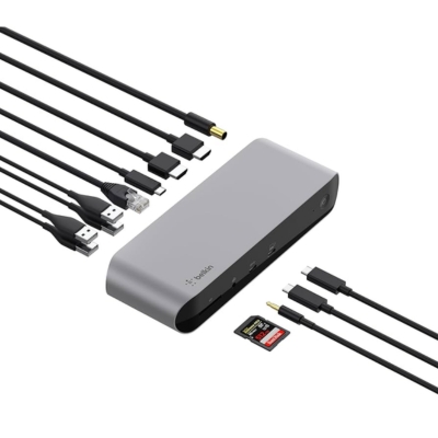 The dockās sleek black aluminum design is both durable and stylish, complementing modern laptops and desktops. Plug-and-play functionality ensures quick setup without drivers, while advanced thermal management maintains optimal performance under heavy workloads. Whether for video editing, gaming, coding, or professional multitasking, the Belkin Thunderbolt 3 Dock Pro is the go-to solution for a clutter-free, high-performance workstation.