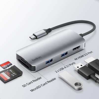 Highlights of the Belkin USB-C 5-in-1 Adapter: