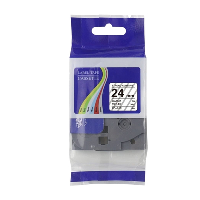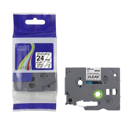 Organize your workspace and assets with the Brother TZE-151 Label Tape, a premium 24mm black-on-clear tape designed for professional labeling across office, industrial, and home applications. Its high-contrast black text on a transparent background ensures a clean, modern look, seamlessly blending with any surface while remaining highly readable.