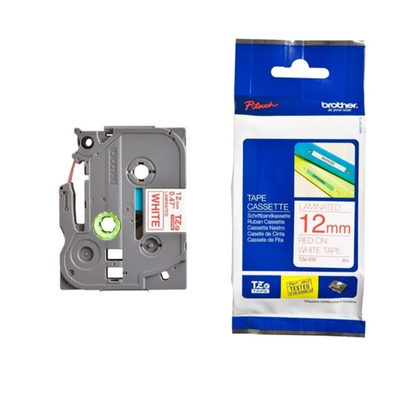 Brother TZE-232 Label Tape | Red on White, 12mm