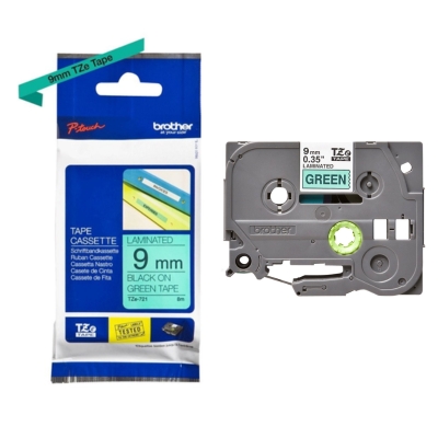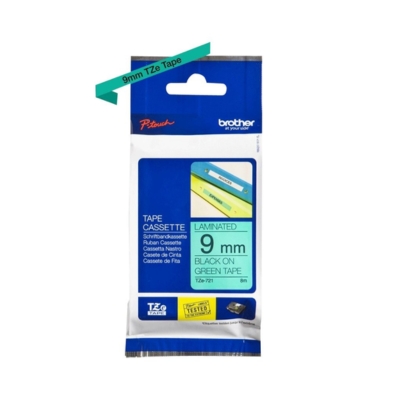 Brother TZE-721 Label Tape | Black on Green, 9mm