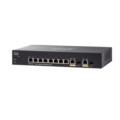 Cisco SG350-10P Managed Switch | 10×GbE Ports (8 RJ45 + 2 Combo SFP) with 62W PoE