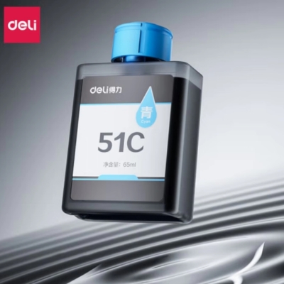 Highlights of the DELI 511C Cyan Ink Bottle 65ml: