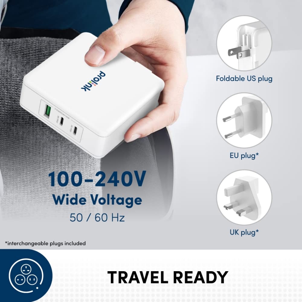 GT-314001-W HT 140W GaN Fast Wall Charger | 3-Port PD3.1 PD3.0 PPS | Dual USB-C and USB-A QC3.0