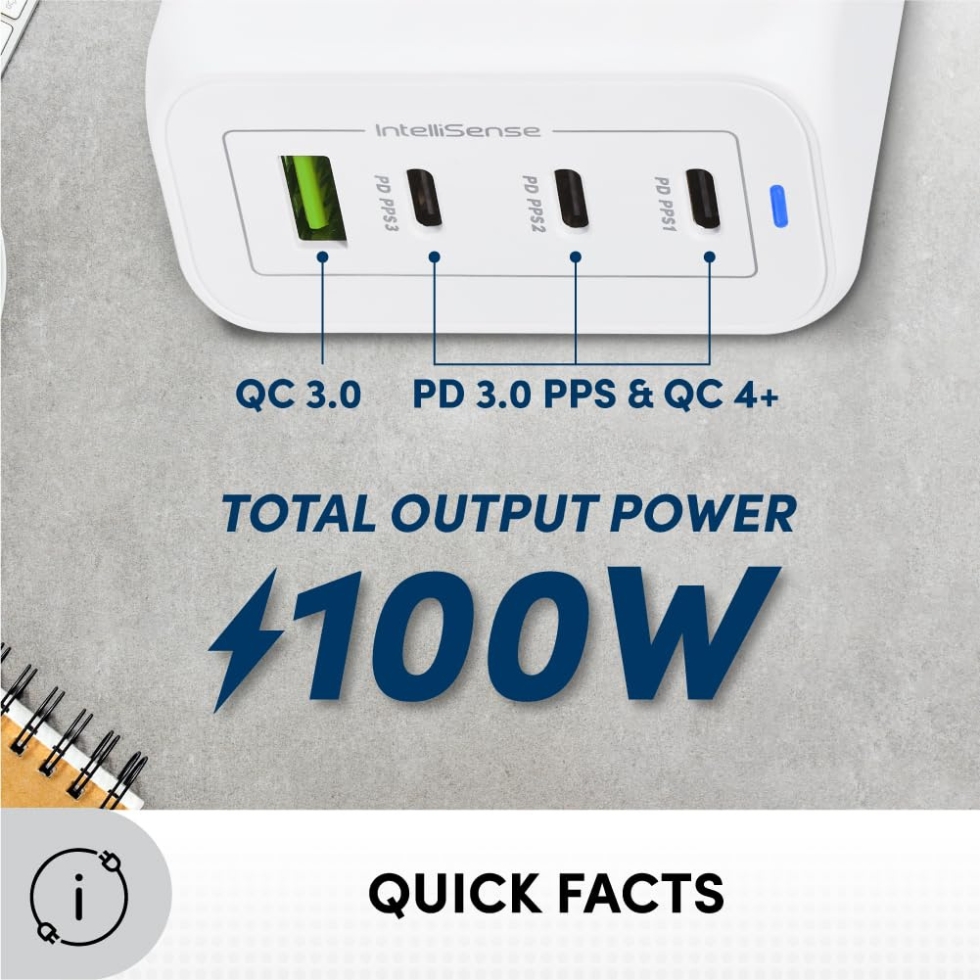 - 100W GaN Power Output — Delivers ultra-fast multi-device charging with maximum efficiency.