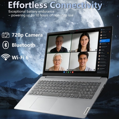 The Lenovo IdeaPad 1 also features integrated Intel graphics, multiple USB ports, HDMI connectivity, Wi-Fi, Bluetooth, and a built-in HD webcam, ensuring seamless connectivity and communication. Its ergonomic keyboard and precision touchpad enhance productivity, while the slim design makes it easy to carry anywhere.