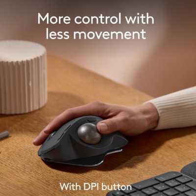 Equipped with high-precision tracking, the MX Ergo delivers smooth and accurate pointer movement on virtually any surface, allowing users to work efficiently in graphic design, editing, programming, and general office tasks. The mouse features customizable buttons and supports Logitech Flow technology, enabling seamless control of multiple computers and effortless file transfer between them.