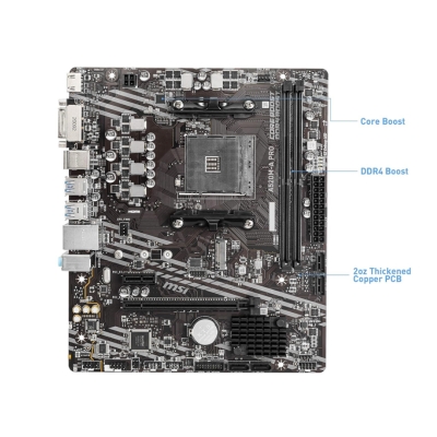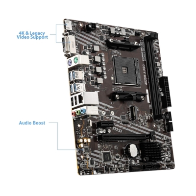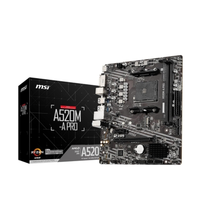The MSI A520M-A PRO delivers reliable and efficient performance for everyday computing, professional work, and light gaming. Supporting AMD AM4 Ryzen 5000 and 3000 Series processors, it ensures smooth and responsive performance for multitasking, office applications, and creative workflows.
