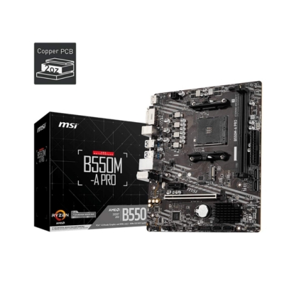 The MSI B550M-A PRO is engineered for efficiency, performance, and stability, making it ideal for budget-conscious gamers, office professionals, and content creators. Supporting AMD AM4 Ryzen 5000 and 3000 Series processors, it provides smooth and reliable performance for gaming, professional workflows, and daily computing tasks.