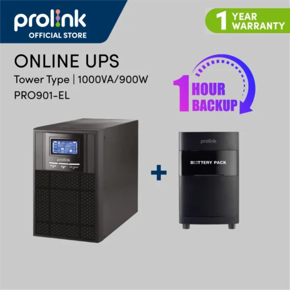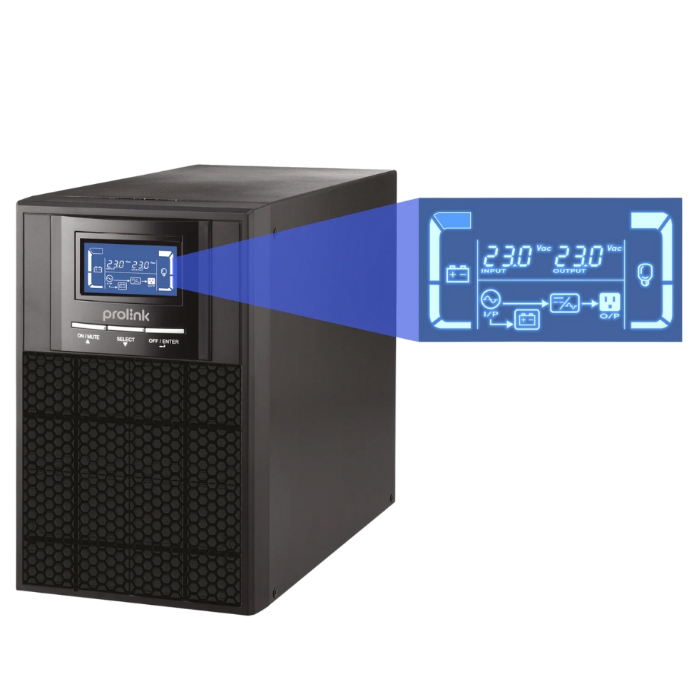 PROLINK 1KVA Online UPS | LCD Display | Long-Run External | 2x Universal Sockets