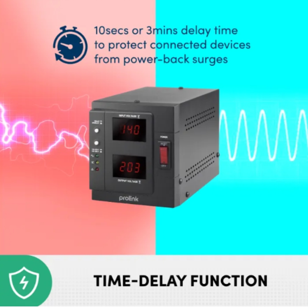Highlighted features of the PVR1000D 1KVA Auto Voltage Stabilizer by PROLINK :