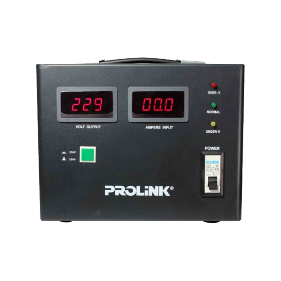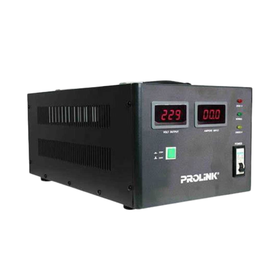 The PVS1001AD PROLINK 1KVA AVR is a high-precision automatic voltage regulator designed to protect your sensitive electronics from voltage fluctuations and surges. Equipped with a digital display, it offers real-time voltage monitoring to ensure stable, reliable, and safe power for computers, networking devices, office equipment, and home electronics.