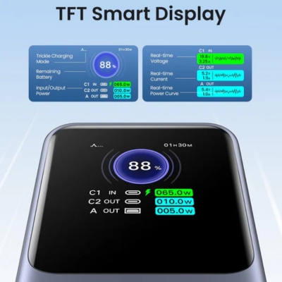 Keep your devices powered anywhere with the UGREEN 20000mAh High-Power Power Bank PB721. Featuring 130W total output via 2 USB-C + 1 USB-A ports, it is capable of charging laptops, tablets, and smartphones at ultra-fast speeds. With intelligent power distribution and premium safety protections, your devices remain safe from overvoltage, overcurrent, and overheating. Its high-capacity battery and portable design make it perfect for travel, office, and daily use.