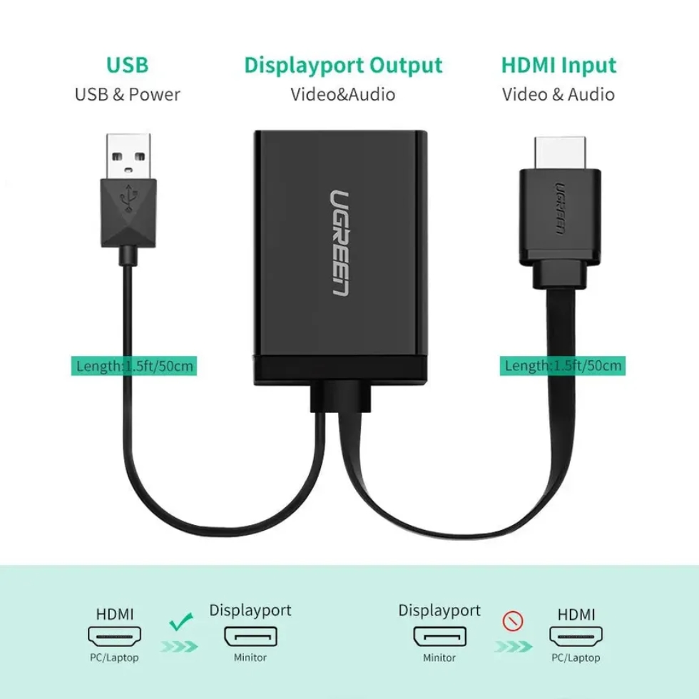 Be the first to review “UGREEN 40238 HDMI And USB to DisplayPort | 4K UHD / FHD 60Hz Display Converter”