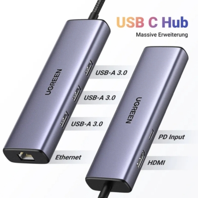 UGREEN 6-in-1 USB-C Multiport Hub CM512 – HDMI, 3× USB 3.0, RJ45 And PD