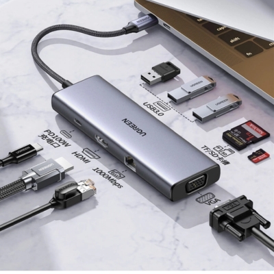 UGREEN 9-in-1 USB-C Multiport Adapter 15600 – HDMI, VGA, 3× USB 3.0, RJ45, SD/TF And 100W PD