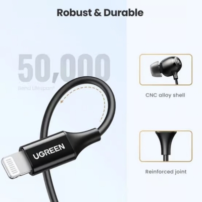Highlighted features of the UGREEN Apple MFI Earphones: