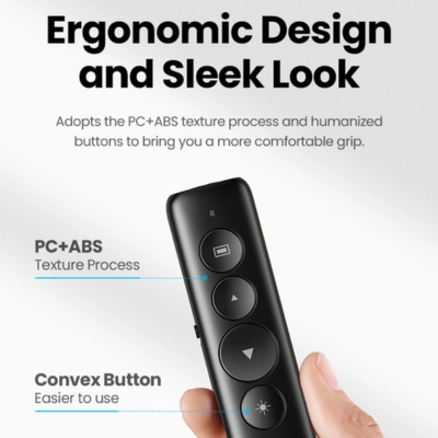 Enhance your presentations with the UGREEN LP479 Wireless Presentation Remote. Designed for professionals, educators, and business users, this compact and ergonomic pointer allows seamless slide navigation, laser pointing, and intuitive control. Compatible with most projectors, laptops, and presentation software, it ensures smooth, professional presentations every time.