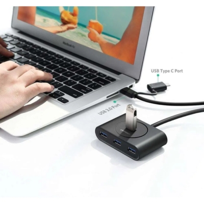 The UGREEN USB 3.0 Hub with Type-C Port delivers ultra-fast data transfer up to 5Gbps, expanding a single USB-A or USB-C port into multiple high-speed ports. It supports simultaneous connection of USB devices and charging via the Type-C port, making it perfect for laptops, ultrabooks, and desktops. Its compact and durable design ensures portable, reliable performance for home, office, and travel use.