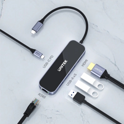 Unitek 6-in-1 USB-C 5Gbps Hub | USB3.0, HDMI, Ethernet And 100W PD D1084A